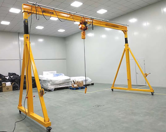 依照龍門架搭配一臺電動葫蘆為工作需求,實際的吊高需要減去電動葫蘆的高度還有工字鋼的高度,一般使用的是25B型號的工字鋼,25B工字鋼統一高度是300mm,接下來就是看所要懸掛的電動葫蘆的高度了,鋼絲繩電動葫蘆和環鏈電動葫蘆型號噸位不同,高度也不同,所以這個高度需要咨詢購買電動葫蘆的廠家,電動葫蘆的高度加上工字鋼的高度,在加上葫蘆下吊鉤到地面的高度就是龍門吊的整體高度。